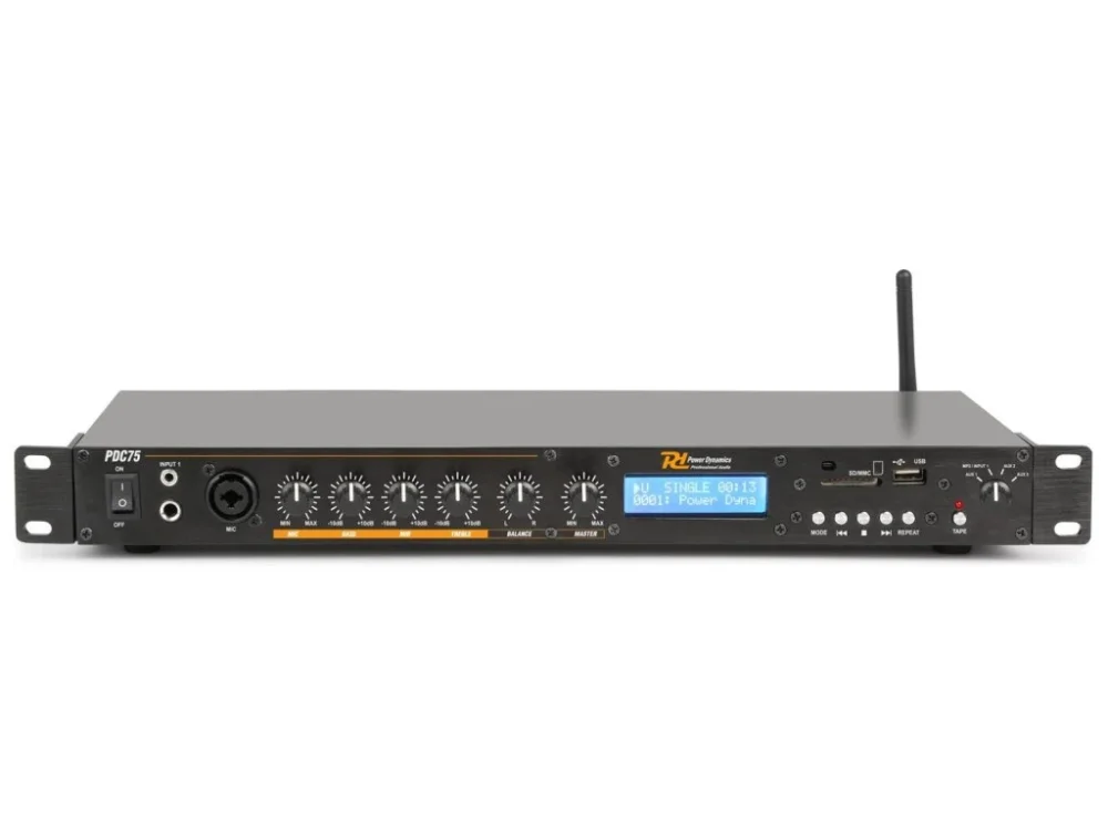 PDC75 je přehrávač médií 1U typu „vše v jednom“ s integrovaným přehrávačem MP3, který dokáže přehrávat soubory přímo ze vstupů USB a SD. Kromě toho je PDC75 také vybaven přijímačem BT pro streamování hudby přímo ze smartphonu nebo jiného zařízení s podporou BT. PDC75 je dodáván s dálkovým ovládáním.