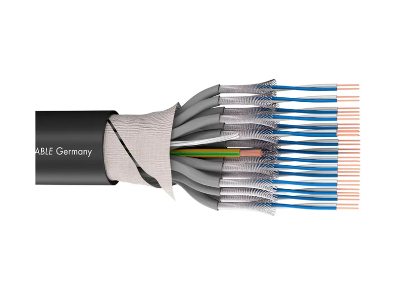 Multipárový audio AES/EBU kabel QUANTUM QMC32 poskytuje kvalitní vedení pro Live a studiové aplikace, ale nachází své místo i pro pevné instalace. Využití pro analogový a digitální přenos signálu. Použita vysoce kvalitní OFC měď s čistotou 99,99%. Lankové jádro vodiče s konstrukcí 36×0,07mm jemných spletených drátků s velmi nízkou kapacitou 45 pF. Díky tomuto jemnému spletení je kabel skvěle ohebný. Jednotlivé páry jsou v samostatném číslovaném S-PVC. Jemné měděné spirálové stínění s faktorem 98%. Odolný a extrémně ohebný S-PVC obal s dostatečně silnou stěnou o tloušťce 2mm. Hodnoty kabelu QUANTUM QMC32 – 32x symetrický kabel, průřez spletených páru 32x2x0,14mm, celkový průměr S-PVC 24mm, 98% stínění, hmotnost 1m 630g, teplotní rozsah použití -25°C až 80°C, barva černá.