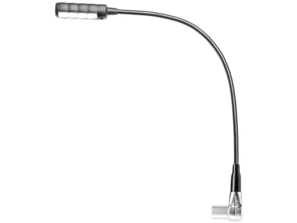 SLED 1 ULTRA XLR 3 A je matně černé světlo na husím krku se 4 mimořádně jasnými bílými LED COB a 3pólovým úhlovým konektorem XLR, které funguje na vyhrazené 12voltové pracovní světlo a 48voltové fantomové napájení. Husí krk o délce 400 mm je snadno ohebný, přesto zůstává na místě, kam jej ohnete, vypínač napájení je pohodlně umístěn na horní straně svítidla.