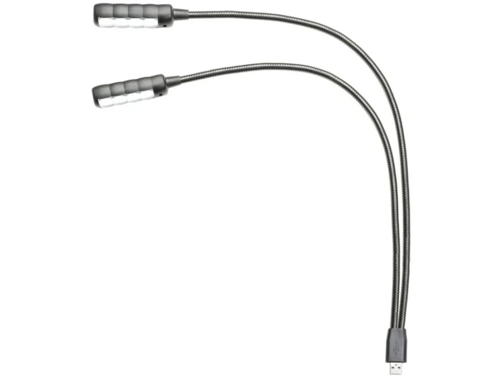 Flexibilní světlo lze používat s pomocí libovolné zásuvky USB typu A a je ideální pro mixážní pulty nebo stojany. Oba husí krky jsou dlouhé 45 cm a lze je flexibilně nastavit podle toho, kde je světlo potřeba. Každý z nich je vybaven 4 obzvláště jasnými diodami COB LED a individuálními vypínači.