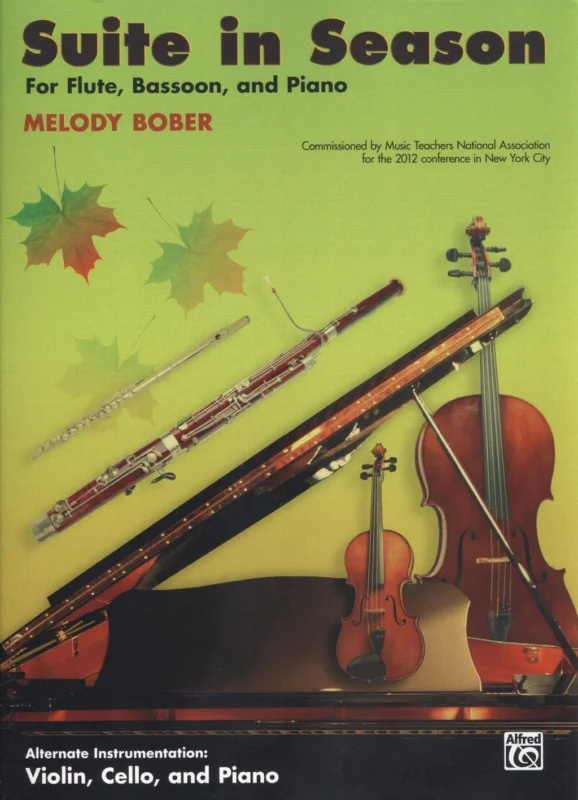 Suite in Season (Sezonní svita) od americké skladatelky Melody Bober Vám přináší čtyři skladby (Autumn Ballade, Winter Romance, Spring Jazz, Summer Latin), které mají každá jiný hudební styl s tématikou ročních období. Skladby jsou napsány jako duet pro příčnou flétnu a fagot, s klavírním doprovodem, ale součástí sešitu jsou také party pro alternativní provedení – housle, violoncello a klavír.Sešit obsahuje klavírní doprovod a plus samostatně vložené party pro jednotlivé nástroje včetně partu pro perkusní nástroje ke skladbě Summer Latin.