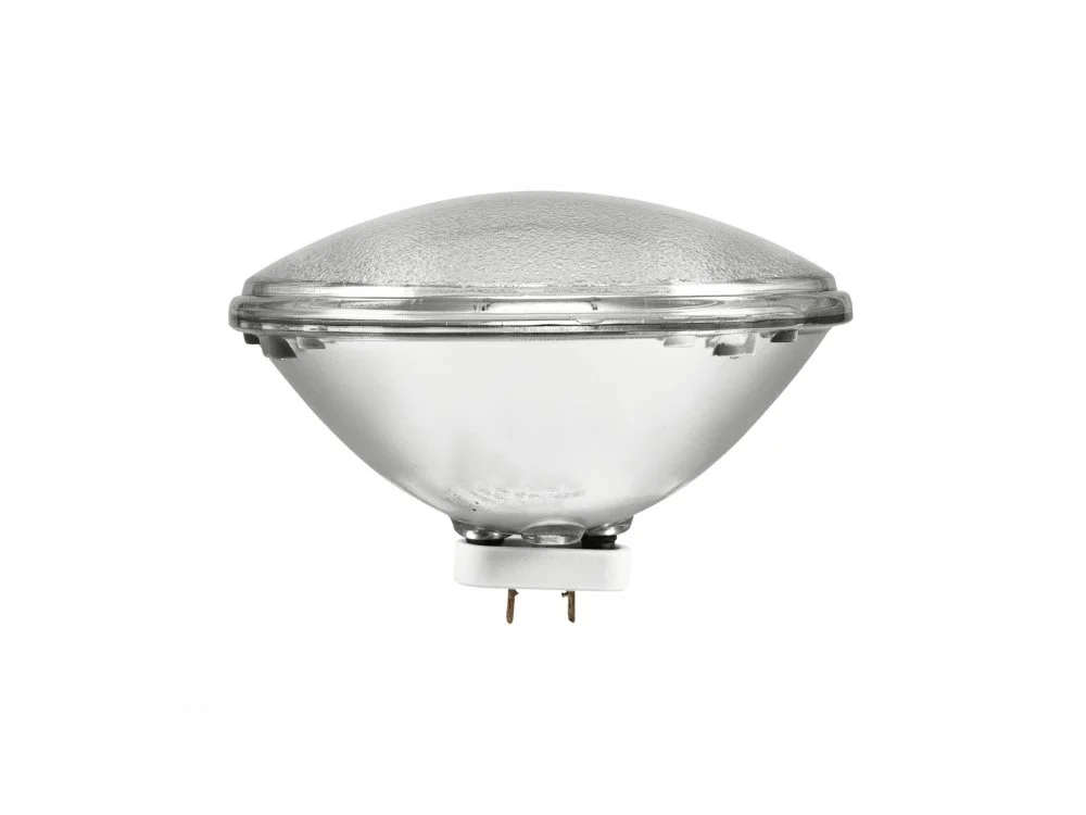 Lampa PAR-56, halogenová žárovka, vysokonapěťová 230V/300W NSP 2000h T. Neškodné pro barevné fólie. Teplo nepřetržitě prostupuje čelním sklem. Pro profesionální efektové osvětlení na diskotékách a na jevištích. Teplota barvy cca. 3000 K.