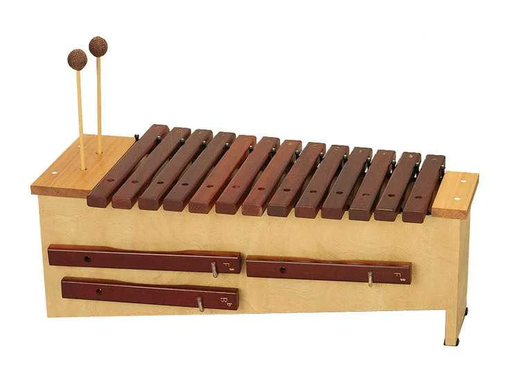 Každý diatonický xylofon obsahuje jeden Bb a dva F# kameny (pokud je vyměníte za B nebo F tóny, můžete hrát další stupnice) a také dva páry vhodných paliček.