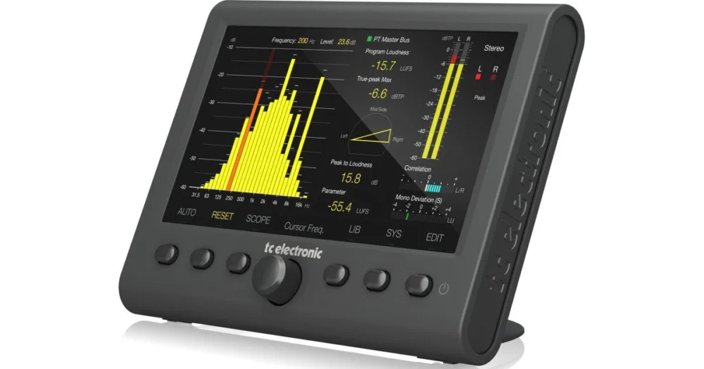 zvukový analyzátor, stereo, 7″ barevná obrazovka s vysokým rozlišením, 2 kanály, USB, kompatibilita s RAM Mount, rozměry 182 x 140 x 25 mm, hmotnost 850 g, v ceně síťový zdroj, USB kabel a redukce pro instalaci na stůl