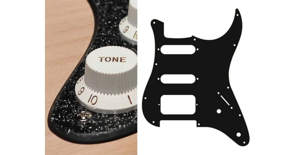 Pickguard, Stallion, SSH, 2 otvory na potenciometry, 3-5 polohový spínač, 2 vrstvy, barva: třpytivá černá