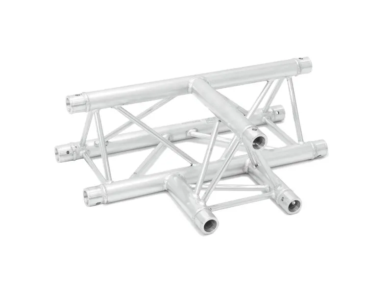 Trilock 6082AT-36, 3-koncový T-díl, 3-bodový konstrukční systém. Vysoce kvalitní hliníkové provedení, tři hlavní trubky s průměrem 50 mm a šířkou stěny 2 mm, příčky s průměrem 16 mm a šířkou stěny 2 mm. Jednoduchá instalace, nízká hmotnost. Pro přehlídky, instalace v obchodech, diskotéky a divadla.