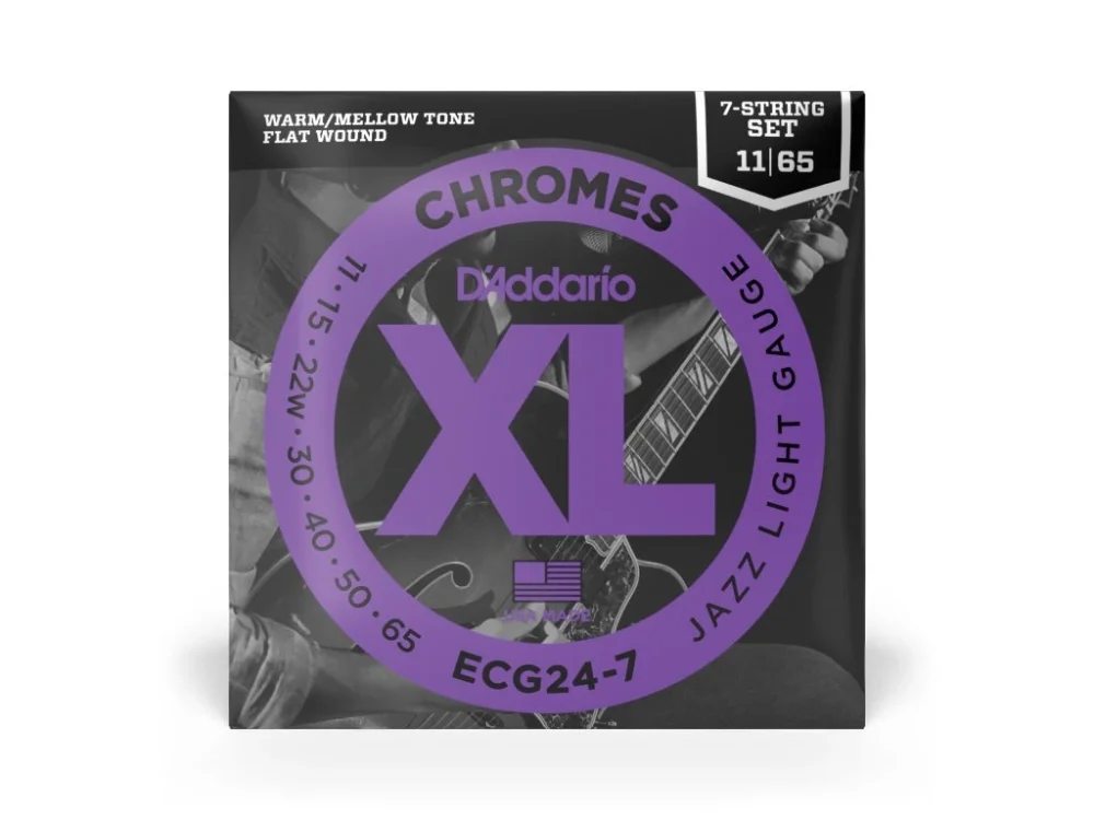 Víkendová Akce D’Addario ECG24-7 Chromes Flat Wound 7-String Electric Guitar Strings, Jazz Light, 11-65