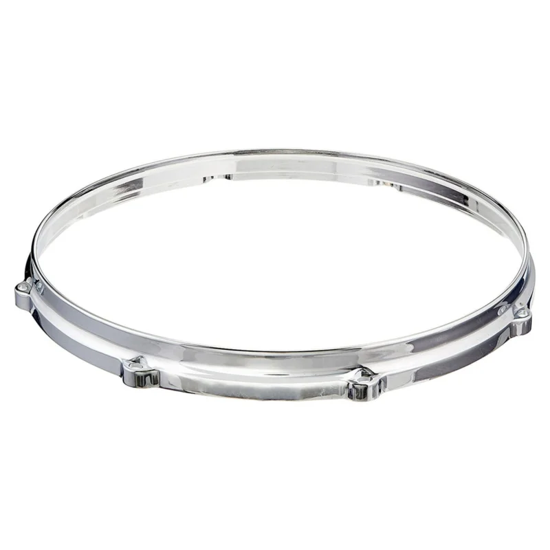 Litý ráfek Gibraltar, horní. Určen pro bubny o průměru 14″, 8 šroubů. Povrchová úprava leštěný chrom.