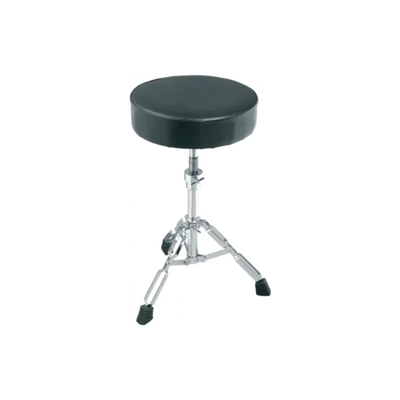 Stolička k bicí soupravě, dvojité nohy, kulatý sedák, nastavení výšky pomocí šroubovice, nastavitelná výška: 560 mm – 780 mm