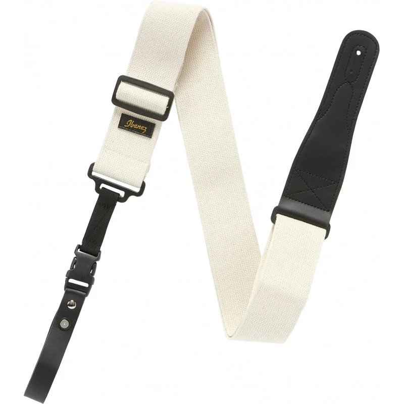 Tento popruh je určený pro akustické kytary. Plastová přezka umožňuje snadné nacvaknutí okolo krku například během vystoupení. Popruh má bílou barvu a je vyroben z textilu.