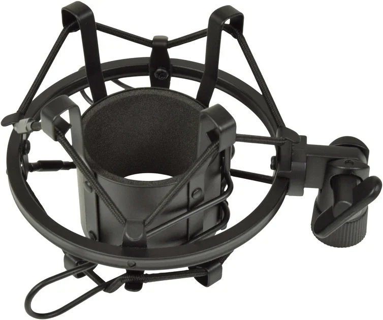 Odpružený držák pro studiový mikrofon, 45 mm (43-47 mm). Poskytuje izolaci od vnějších vlivů, které mohou způsobit nežádoucí zvuk. Úhlově nastavitelný, standardní závit 5/8″.
