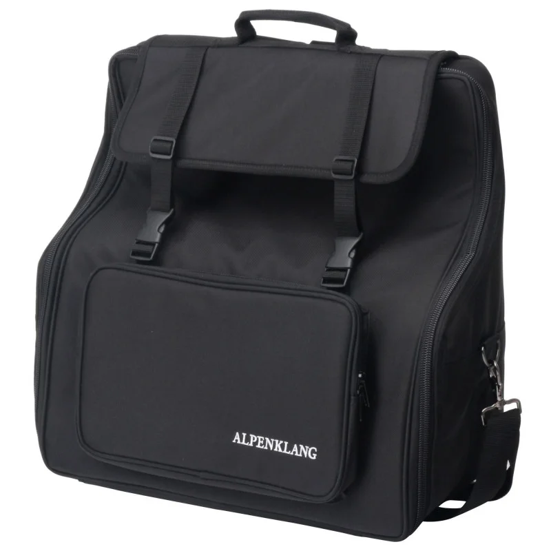 Taška na akordeon vhodná pro akordeony se 120 basy v černé barvě disponuje velmi příjemnými, měkkými popruhy na záda i velkou odkládací přihrádkou v přední části. Je vyrobena v pevného voděodolného materiálu a má 10 mm silné polstrování.