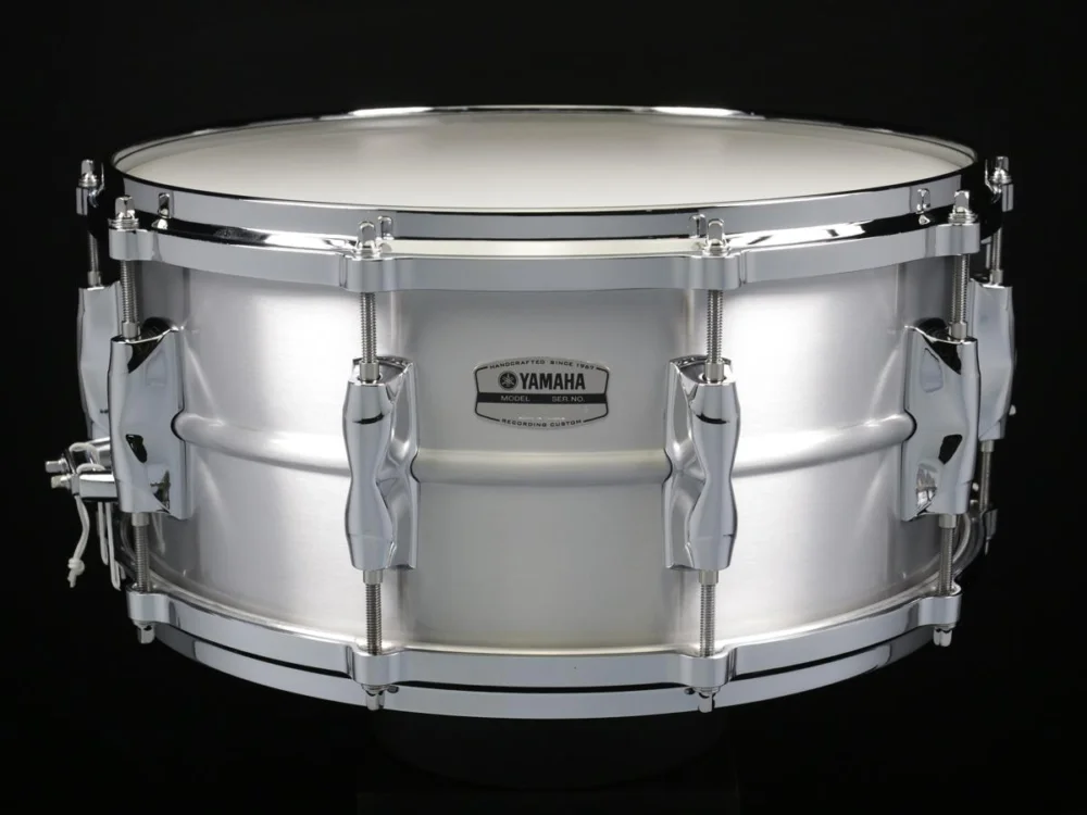 YAMAHA Recording CustomAluminium – nová řada bubínků je v podstatě obnovením legendárních snare Yamaha, které po řadu let doplňují soupravy těch nejlepších hudebníků na celém světě. Nově představená řada Yamaha Recording Custom navazuje na úspěchy předešlých řad, kdy řadou drobných inovací posouvá zvuk těchto nástrojů opět o něco výše. Řada pokrývá materiálově všechny běžně používané a ověřené materiály – hliníkový plech, nerezový plech a mosazný plech, nově nadisajnované průběžné mušle dostaly jméno One – piece lugs, které elgantně překračují středovou linku, která byla dříve umístěna do vnitřního prostoru bubínku, nyní podobně jako ostatní výrobci byla přesunuta na vnější stranu bubínku což způsobuje otevřenější a více artikulovaný zvuk, zcela nová, velmi robusní mechanika strunění se jmenuje Q-typ a funguje velmi spolehlivě, u všech bubínků s hloubkou 5,5″ je standartně dodáváno i druhé strunění za jehož návrhem opět stojí legendární bubeník Steve Gadd, jde o 14-ti pramenné strunění, kde jsou 4 střední prameny odstaněny, důsledkem je zvýšení mezního zvuku, který dovolí hráči produkovat ostřejší staccato tón.