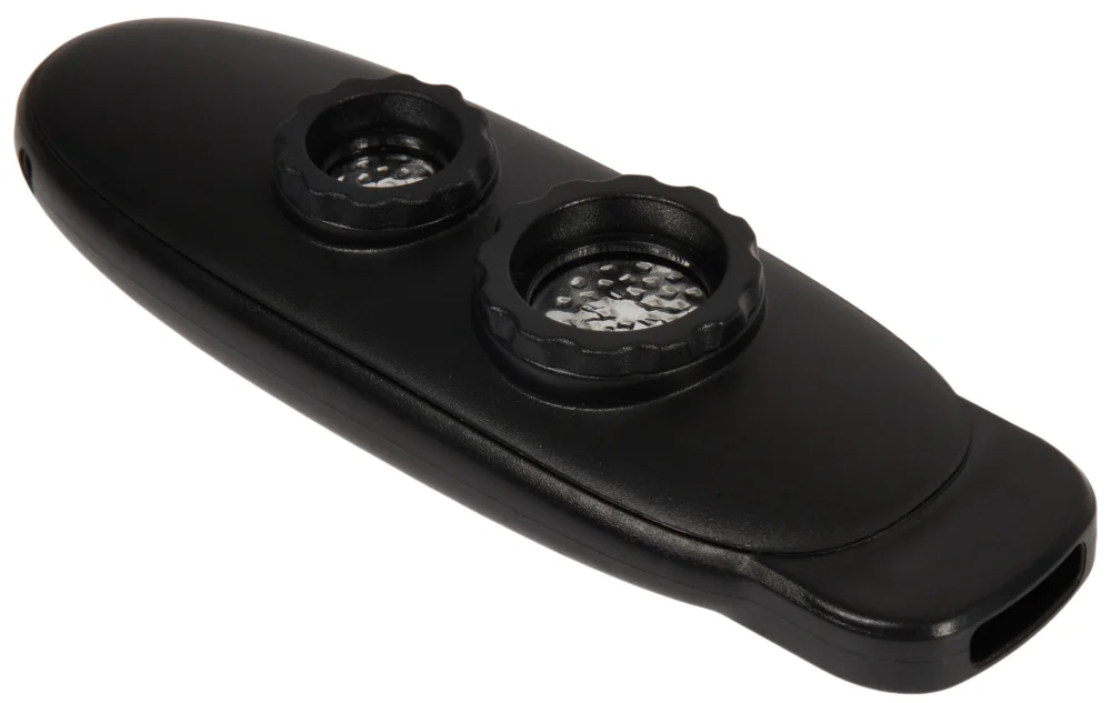 Plastové double-hole kazoo se dvěma otvory/membránami. Tento design vám umožní broukat melodii v nižším i vyšším ladění bez nutnosti měnit membránu kazoo. Otáčením krytů lze nastavit pnutí membrány a měnit tak zvukovou odezvu kazoo.Před prvním použitím a po každém hraní je vhodné kazoo omýt.Parametry:
