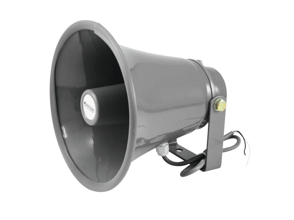 Re-entrantní reproduktor. Odolný proti vlhkosti, 8 Ohmový systém, hliníkové provedení, možnost uzamčení v nosných držácích.