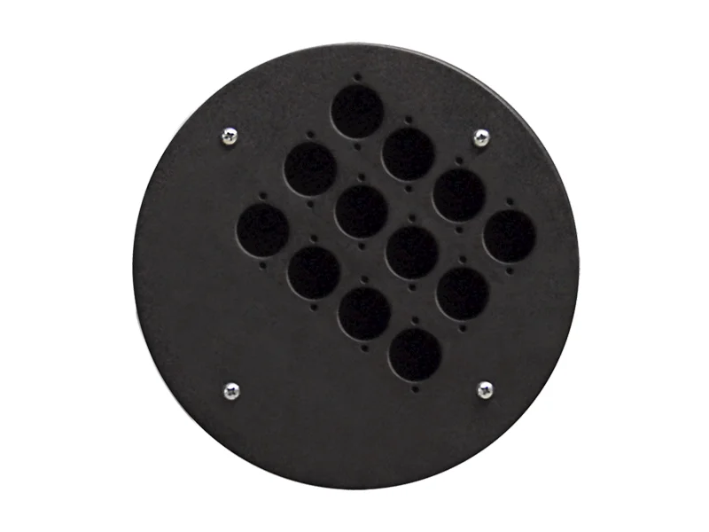 Čelní plechový panel pro kabelové bubny ProCab CDM300, CDM310 i pro bubny Schill GT310 a HT řadu. V čelním plechu jsou 12x volný otvor pro panelové konektory ve standardním rozměru D jako je např. NC3FD-L-1 nebo NC3MD-L-1. Kovové provedení. Barva černá.