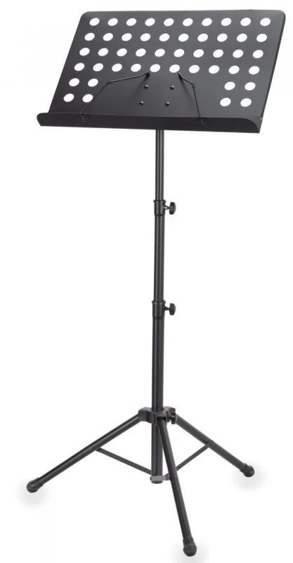 Celokovový notový stojan značky Soundsation s perforovaným pevným notovým pultem je univerzálně vhodný pro hru v orchestru i v kapelách. Nabízí základnu na trojnožce, nastavitelnou výšku (50 – 140 cm) a snadné a rychlé připevnění/odejmutí notového pultu. Rozměry notového pultu odpovídají 48 x 34,5 cm, průměr kovových trubek 19-22-26 cm.Parametry: